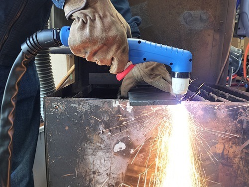 200V電源とエアーコンプレッサーがあれば気軽に使う事ができ、使い方はエアーホースを接続し、母材にアースクリップを挟んで切りたい個所にトーチ先端をのせてスイッチを押すだけで、特に難しい操作は必要ありません。
