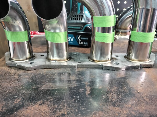 余談ですが、社外エキマニはここから排気漏れが多々あるようです。TIG溶接してそのままだと波打つような歪が酷くて漏れるんでしょう。