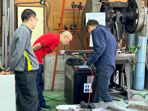 ファイバーレーザー溶接機の納品<溶接未経験の女性でも簡単に溶接できました!>会長さんも大喜び❣