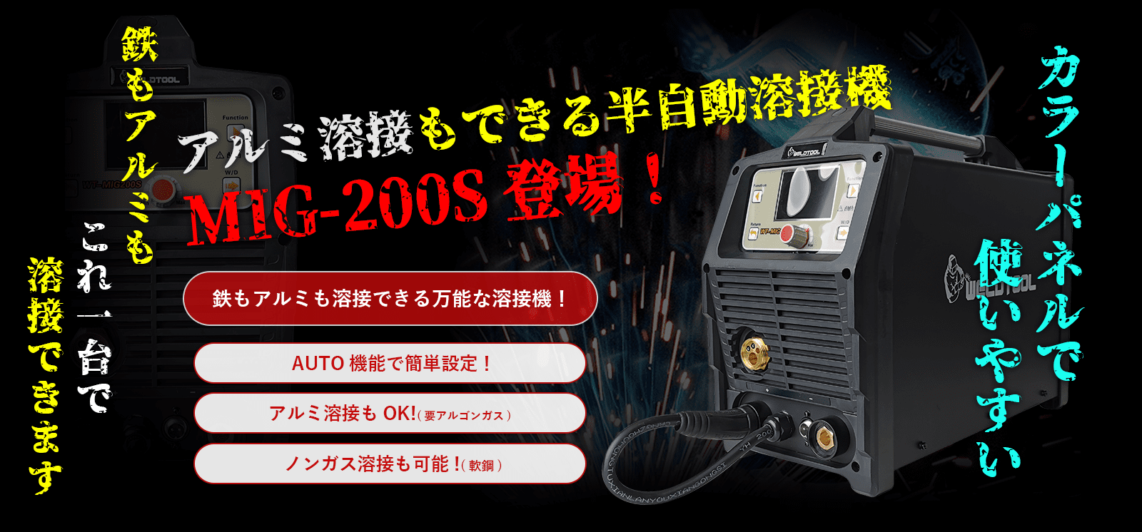 溶接が可能な万能な半自動溶接機となっています。