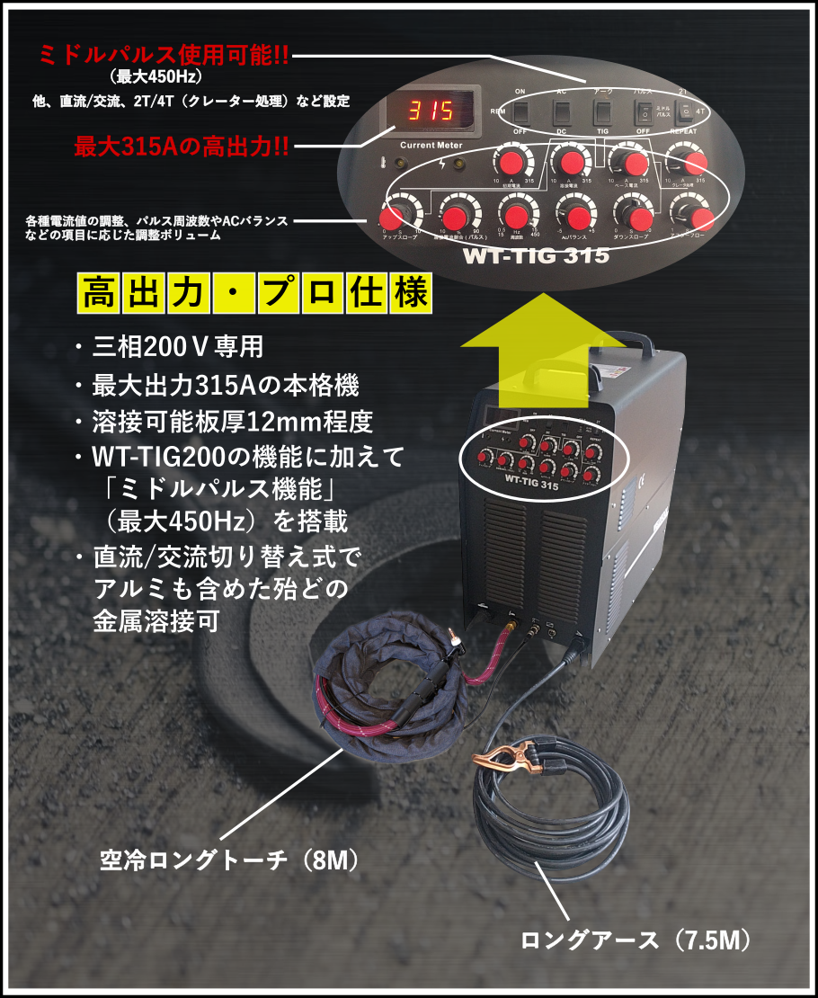 そして今回新発売となるWT-TIG315は最大出力が315アンペアの最上位機種となります。