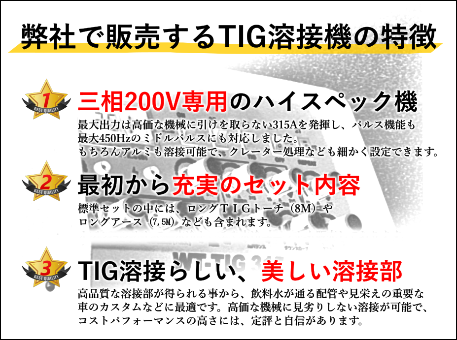 弊社のTIG溶接機WT-TIG315に興味を持っていただき、ありがとうございます。