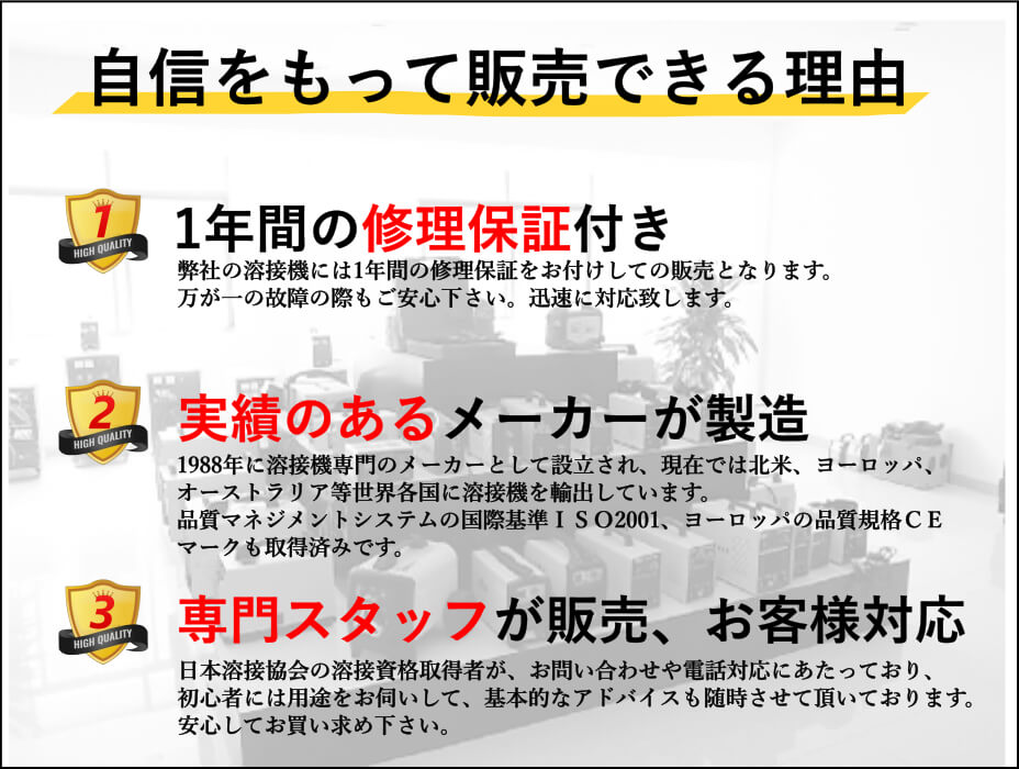 今までの溶接機と同様、万が一故障した場合は弊社へ発送いただければ、すぐに修理致します。
