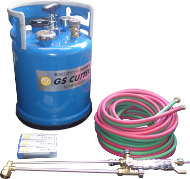 ガソリン酸素溶断機GSカッターは従来のガス切断機と似ている商品ですが、アセチレンの代わりにガソリンを使って切断するため、ランニングコストを大幅に削減できる商品となっております。