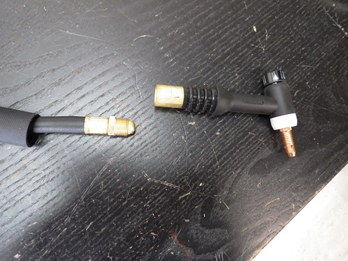 ※こちらは構造上何度も曲げていると折れますので、耐久性は通常トーチヘッドに劣ります。また、高出力(140A以上程度)での連続した作業やローリング法でのTIG溶接には向いていません。