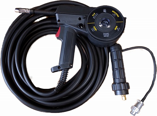 通常のトーチですと、ケーブルの中をワイヤーが通るので長さが短く、あまり曲げられないので、取り回しにも気を使わないといけません。しかし、スプールガンだと手元にワイヤーをセットするので、ケーブルの取り回しを気にせず、作業に集中できます。長さも10Mあり、作業範囲が広がります。