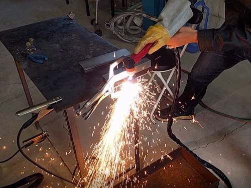 プラズマ切断機「WT-100」はプラズマによる熱エネルギーで母材を溶かし、